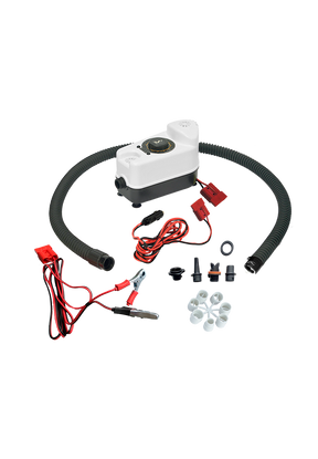 Fornito nell'apposita borsa con tracolla è dotato di tutti gli accessori: tubo lunghezza 1,70 m, cavo alimentazione 3 m, spinotto accendisigari e morsetti per batteria 12 V.