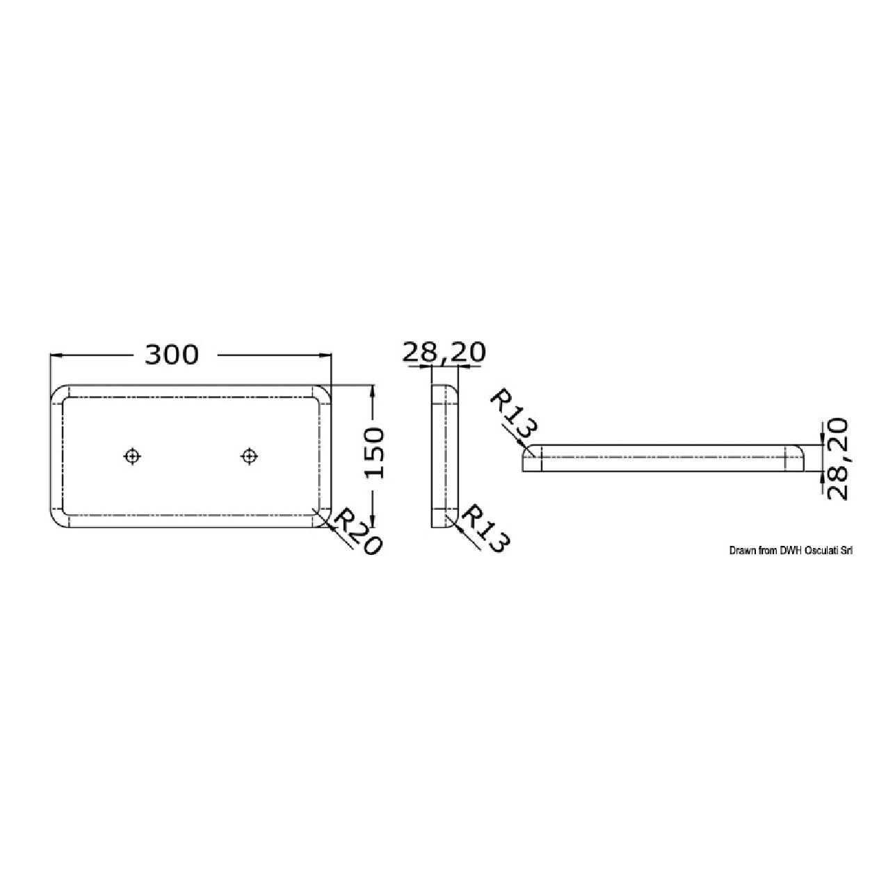 Anodo da imbullonare § Interasse fori mm, 125, mm, 300x150, 8