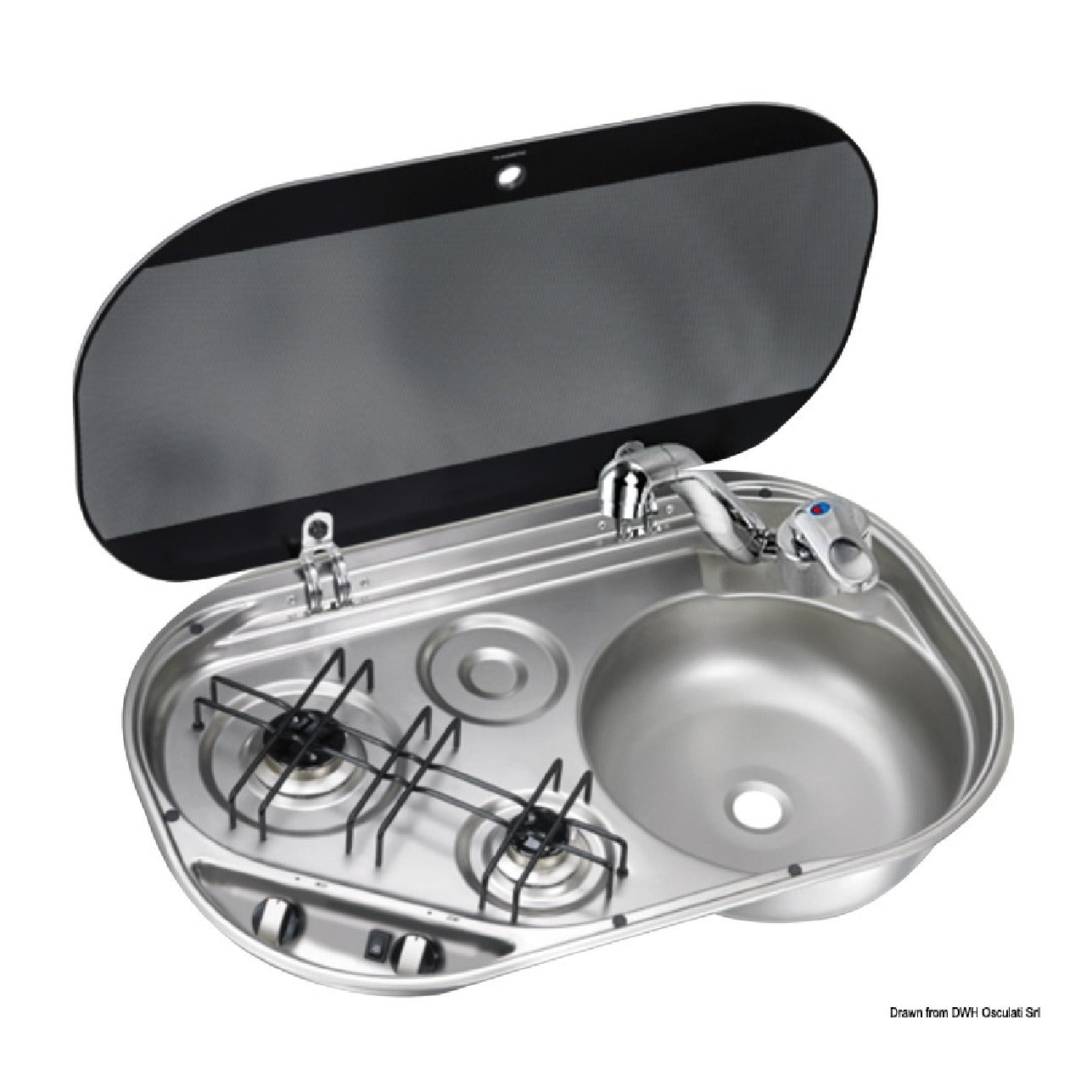 Osculati Piano cottura in acciaio inox DOMETIC con coperchio in vetro temperato fum 50.803.40