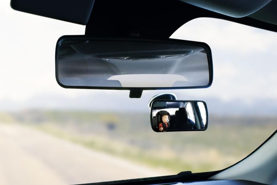 Specchietto retrovisore guardabimbi da interno: assicura una visuale completa di bambini e passeggeri sul sedile posteriore. Montaggio sul vetro con ventosa. Angolo di visione regolabile. Rotante di 360°. Dimensioni: 125 x 63 mm.