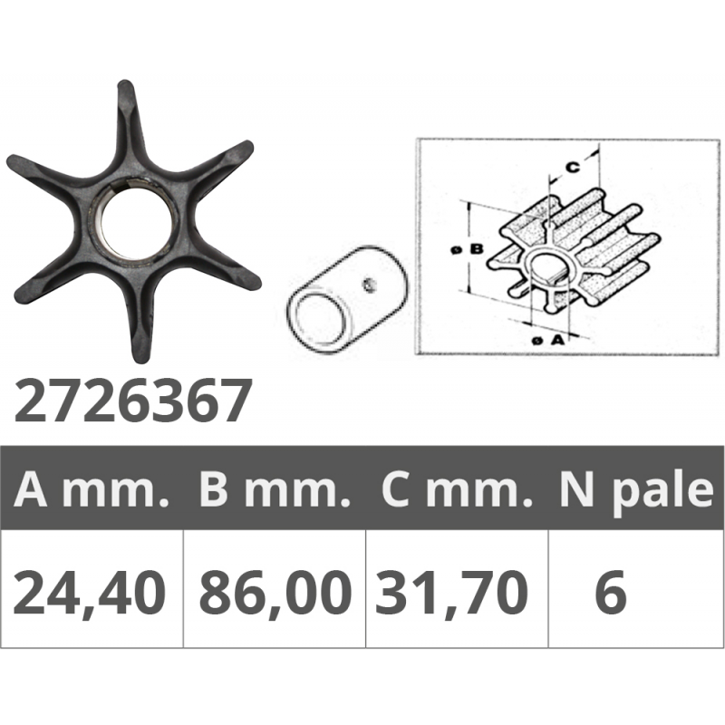 GIRANTE SUZUKI 4T 90-115 HP. Rif.or.17461-94511, 17461-90J01 per motori 4T 90-115 HP, dim. Ø int.mm. 24,3 Ø est.mm.86 spessore mm.31,7, nr.6 pale. Suzuki: 17461-94500/94511/90J01/94510/90J00 - HP 2 Tempi DT115-DT140-DT150-DT200 - HP 4 Tempi DF90-DF100-DF115-DF140-DF175