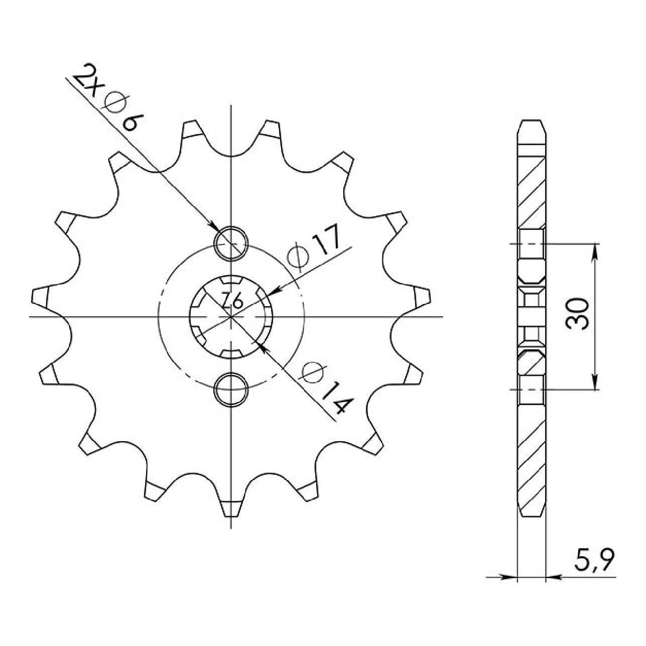 Stahlkettenrad, 14 Zähne, Teilung 420, passend für Honda ST Dax 50 cm³, Baujahre 88/89