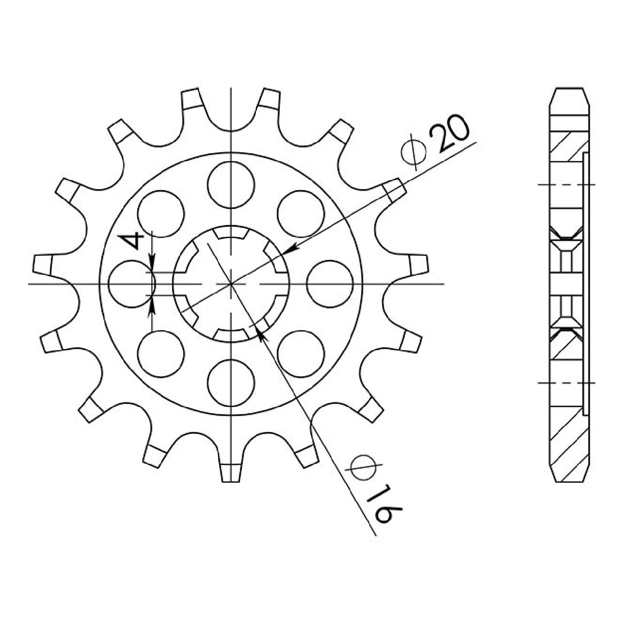 Stahlkettenrad, 14 Zähne, Teilung 428, KAWASAKI KX 80 cm³ 83/85
