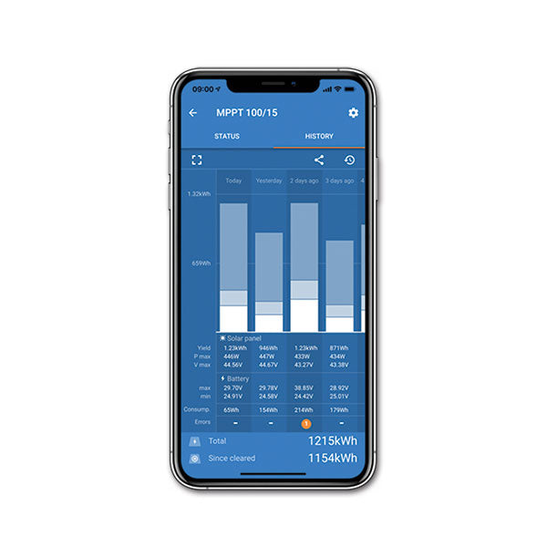 Il regolatore di carica MPPT Victron 75 V / 15 A di ultima generazione ottimizzano la carica massimizzando la resa del pannello, permettendo così di ottenere una carica completa il più rapidamente possibile.