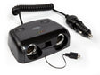 Dual car cigarette lighter socket with micro USB input and battery tester. Retractable cable with micro USB port for charging smartphones, all new cell phone models (except Apple), and most satellite navigation systems. Two 12V cigarette lighter sockets for powering devices with a current draw of up to 10 amps. Built-in tester for checking battery charge status. Sockets equipped with an LED perimeter ring for easy identification at night. Cable