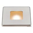 Bos small recessed LED ceiling light § Square with square lens. Polycarbonate body with mirror-polished stainless steel ring. Satin lens. Single central LED. Fixing with screws. § Finish, Polycarbonate + steel, V, 12/24, W, 2, Switch, Yes - touch dimmable, Lumen, 160+50, K, 3000, LED angle, 80, No. LEDs, 1, Light color, White + night red