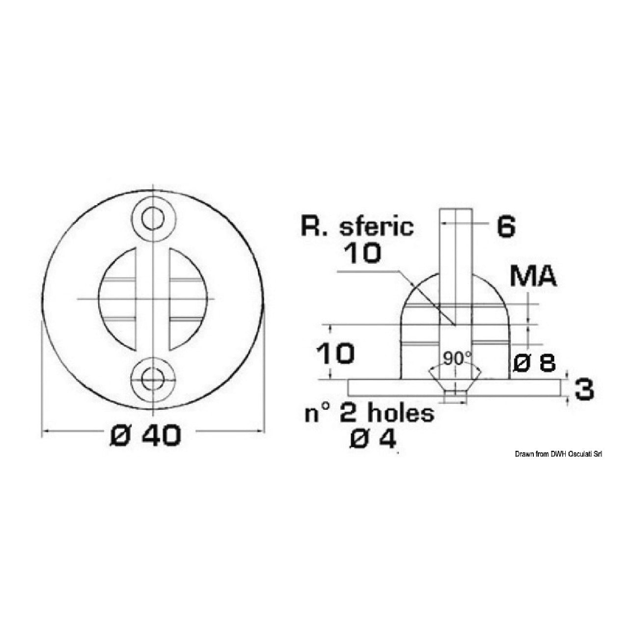 Osculati Base with fork diameter 6 mm 38.013.66
