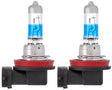 Pair of H11 12V bulbs capable of projecting up to 150% more light on the road, with a beam up to 80 m longer than a standard bulb. The whiter, brighter, and higher-contrast beam ensures better visibility of road signs. Approved for road use and perfectly interchangeable with standard bulbs: no modifications to the vehicle's electrical system are required. Lifespan over 350 hours.