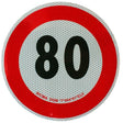 Approved 80km/h speed limit sticker. Made of class 2 reflective film. Diameter: 200mm.