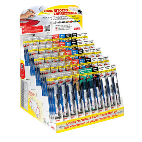 Complete display of 150 assorted body touch-up pens in 50 colors