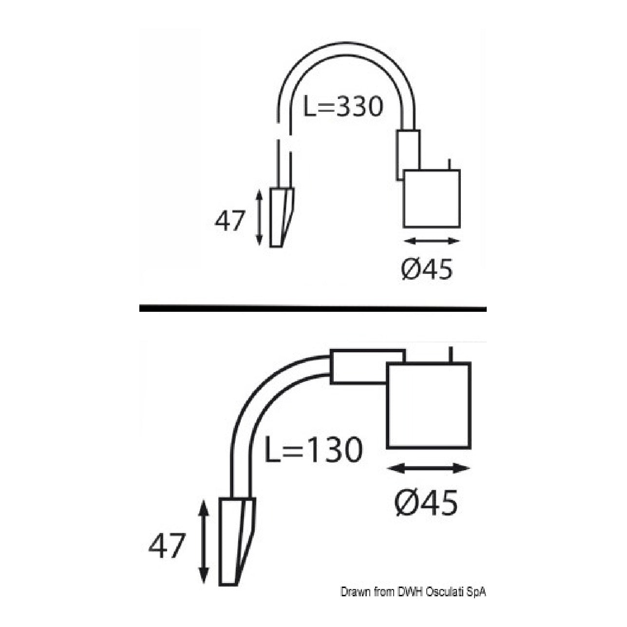 Articulated LED spotlight for bed head/card reading § Finish, Black, V, 12, W, 1.3, Switch, Yes, No. LEDs, 6 SMD LEDs, Arm mm, 330, Light color, White + night red