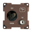 Modular electrical equipment. Made of plastic, stainless steel, and brass, extremely easy to assemble and has a very attractive look. Module dimensions: 50x50 mm. Variant: Brown, Product: 8 - TV antenna socket + mobile phone or cigarette lighter socket.