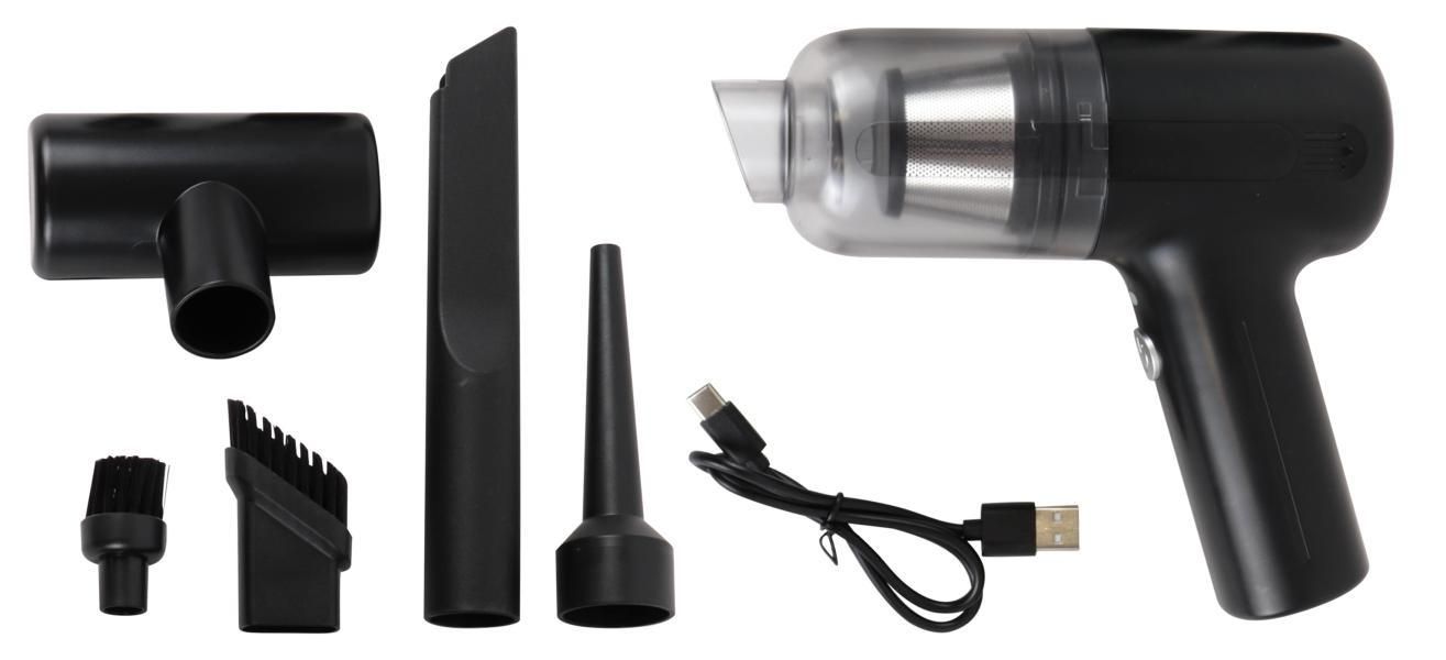 Multifunctional handheld vacuum cleaner/blower. Rechargeable via the included USB-C cable. Equipped with a washable HEPA filter. Comes with practical accessories for all your cleaning needs. Compact and space-saving: only 18 x 16 x 6 cm. Power: 65W.