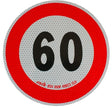 Approved adhesive disc for 60 km/h speed limit warning. Made of class 2 reflective film. Diameter: 200 mm.