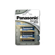Blister pack containing 2 Panasonic 1.5 V C-size alkaline batteries.