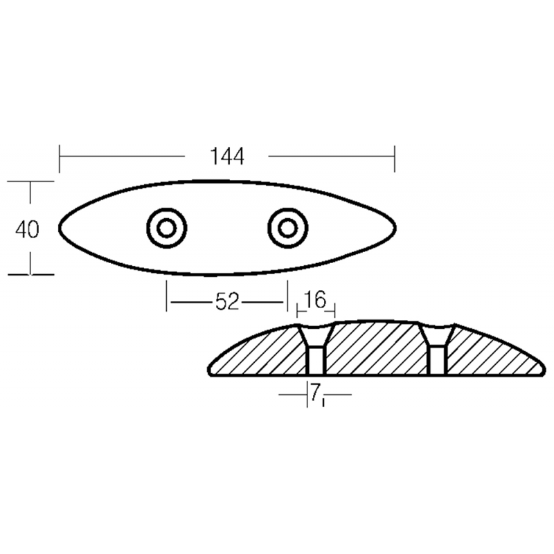 Ánodo ovalado. Ánodo ovalado para aletas, tamaño 145 x 40 x 20 mm. Ánodo ovalado de zinc para aletas, 145 x 40 x 20 mm.