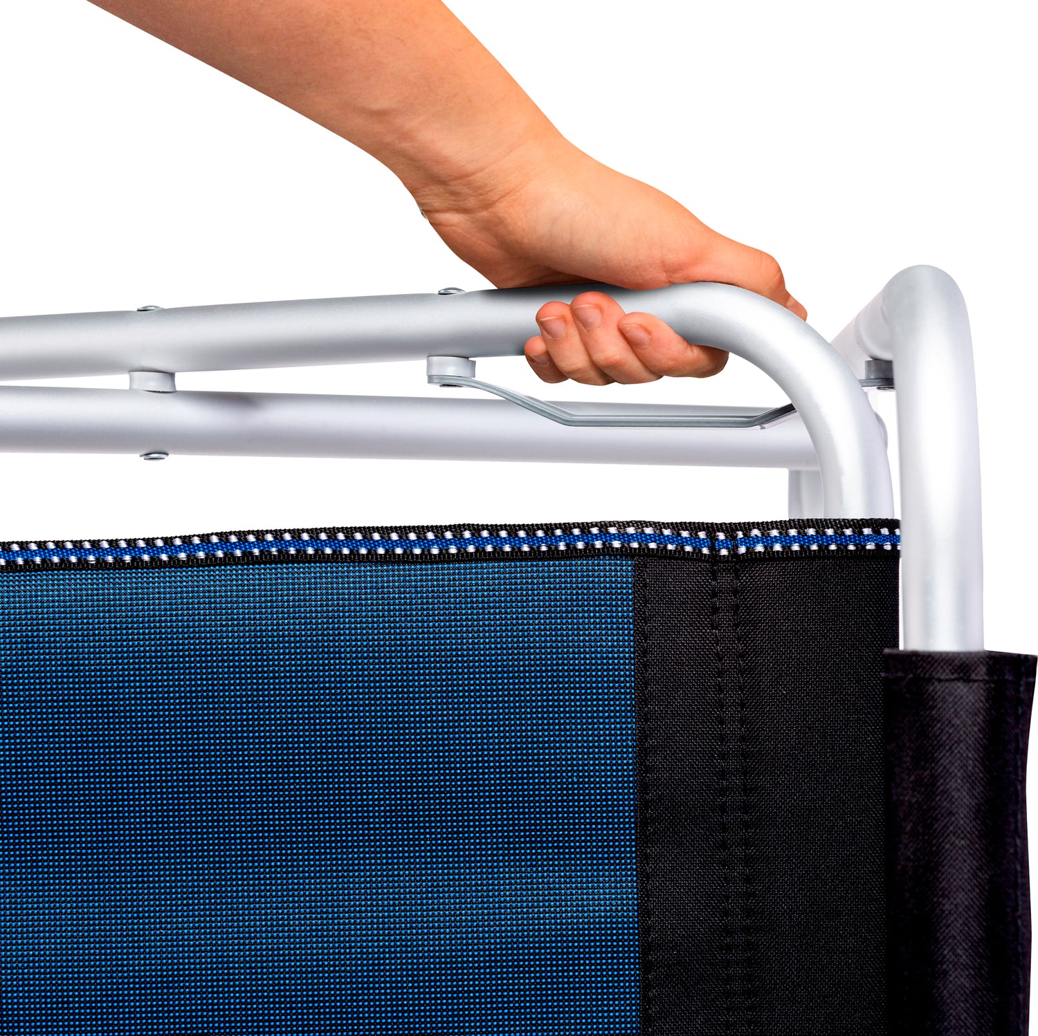 Silla de director compacta con estructura sólida de aluminio anodizado.