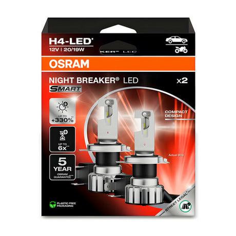 Osram Night Breaker Led Smart de 12 V - H4 - 20/19 W - P43t - 2 unidades - Caja