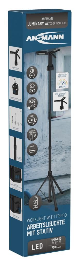 Lámpara de trabajo recargable profesional de 3 focos Ansmann