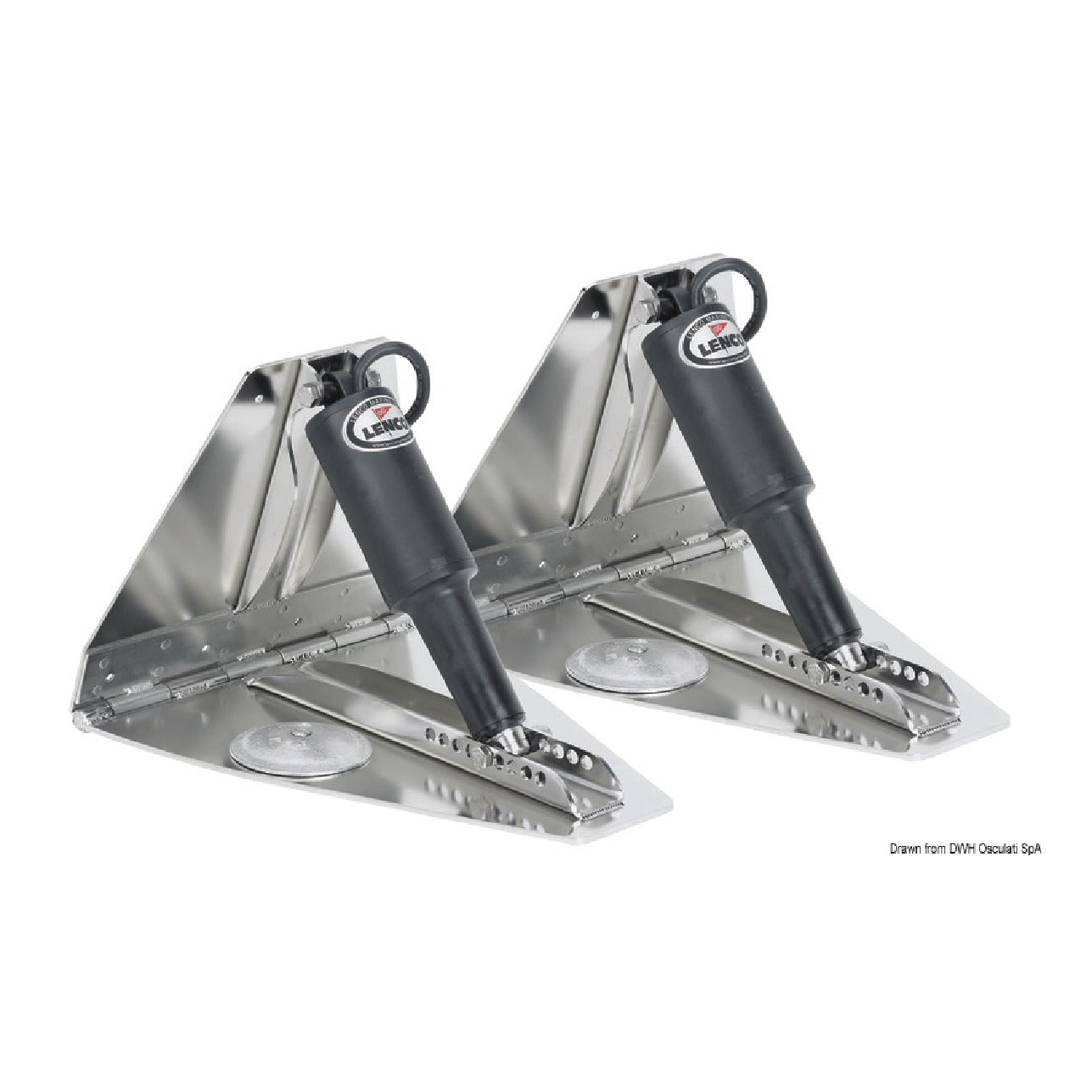 Kit de flaps de alto rendimiento LENCO HP § Adecuado para embarcaciones muy rápidas/de competición. El kit incluye: - 2 cilindros actuadores 51.260.03 (código LENCO 15056-01). - 2 alerones de acero inoxidable. El panel de control y las extensiones para la conexión del actuador a la unidad de control deben adquirirse por separado. § V, 12, alerones - L mm, 457, alerones - A mm, 305, alerones - L''xA'', 18x12. Recomendado para embarcaciones de 8 a 12 m