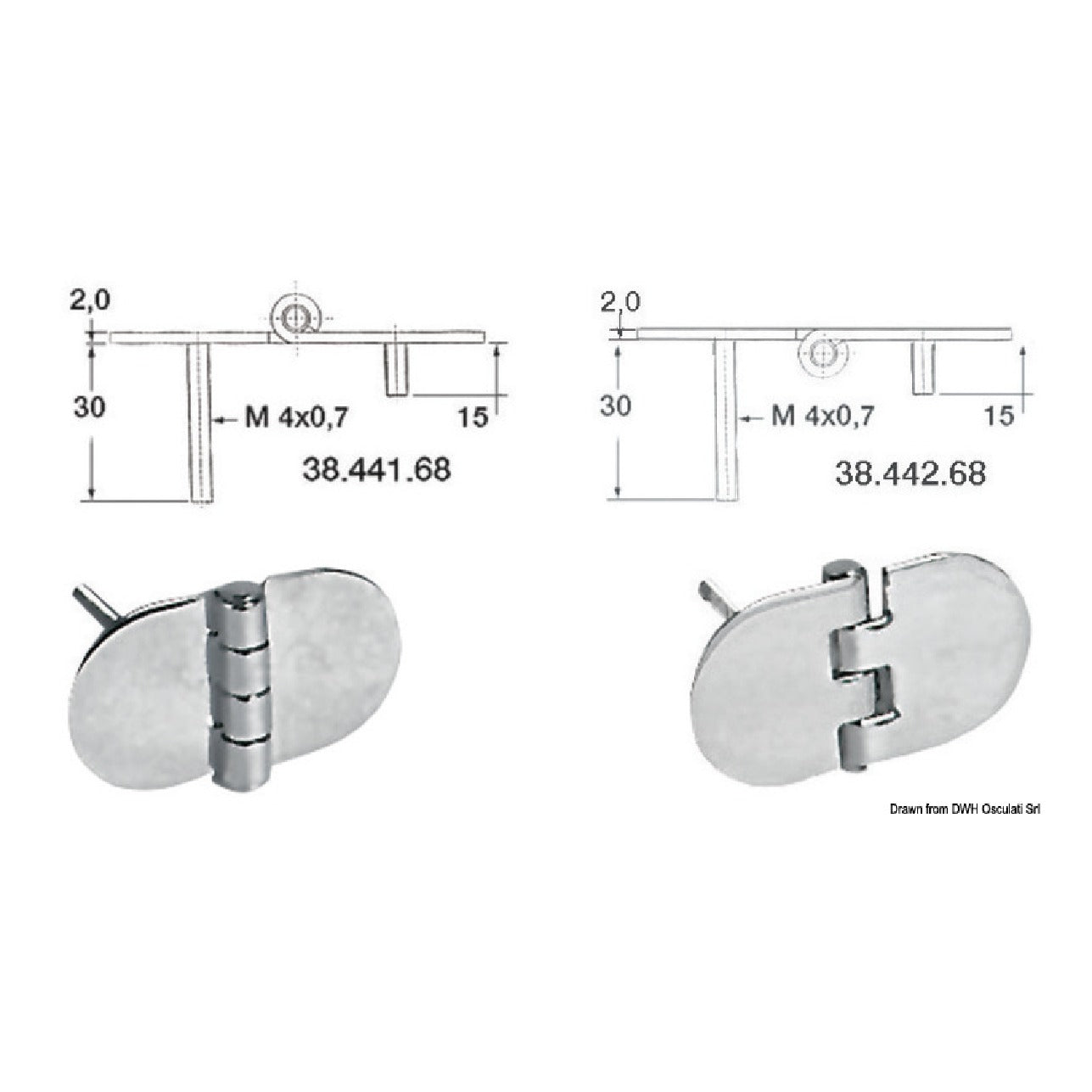 Osculati Cerniera inox rovesciata 68,5x38,5 mm 38.442.68