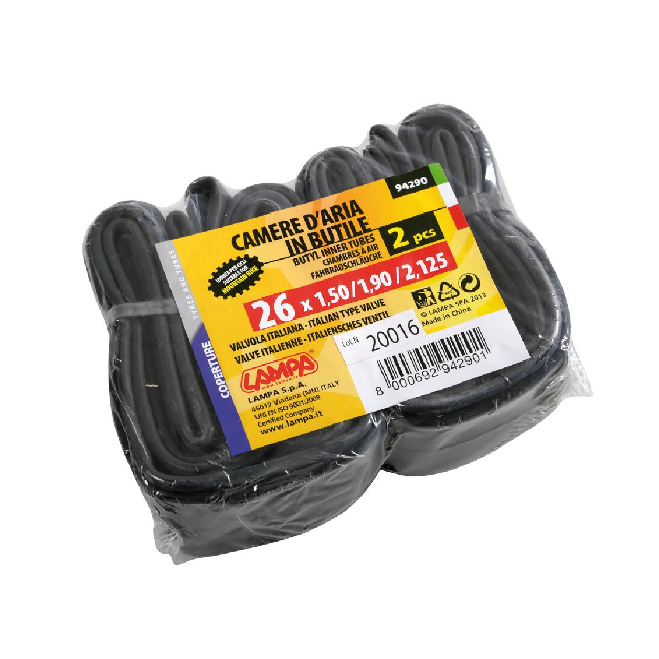 Lampa Camere aria in butile, 2 pz - Valvola Italia - 26 x 1,50/1,90/2,125