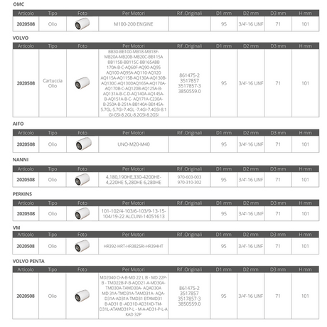 Osculati Filtro olio Volvo Penta 23005191 17.501.41