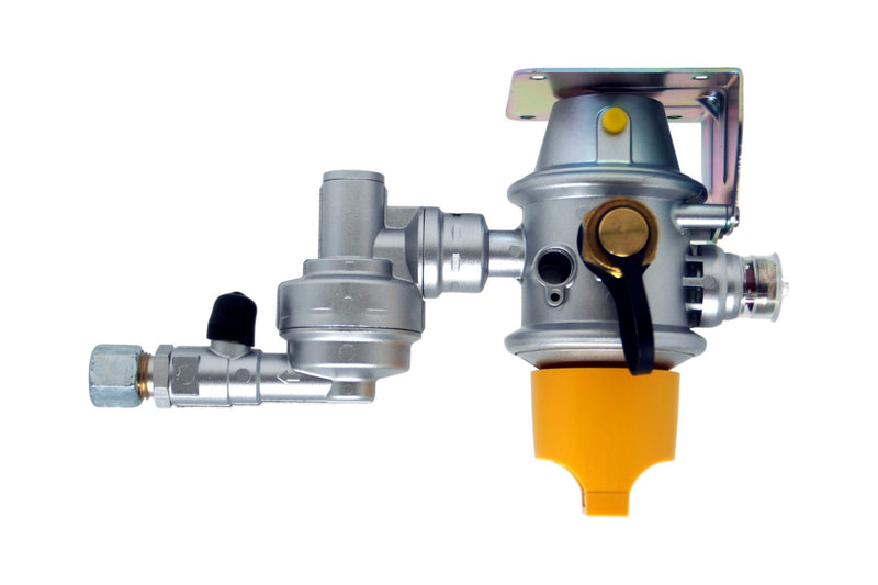 Regolatore di pressione: Questo dispositivo riduce la pressione del gas dalla bombola per adattarla ai dispositivi che lo utilizzano, come la cucina o il frigorifero. Esistono modelli per butano o propano, quindi è importante scegliere quello giusto in base al tipo di gas utilizzato.