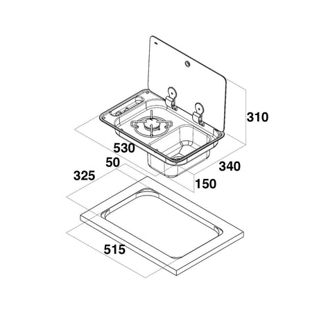 Piano Cottura 1 Fuoco con Lavello SX e Miscelatore Osculati 50.714.02