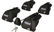 Set 4 piedi per barre portatutto Thule. Specifico per auto con barre longitudinali di serie. Serrature incluse. Portata: 100 kg.